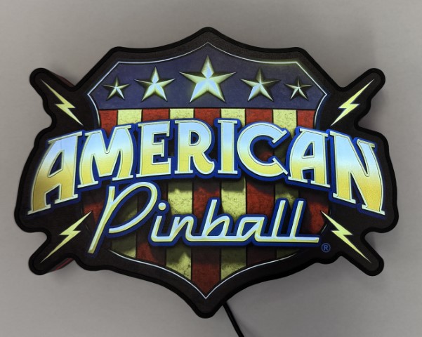 Pin-Signs are contour shaped light up desktop signs (or have holes to hang on a wall), plug directly into 5v USB connections, and can be powered from a computer or other USB connection. The American Pinball Shield Pin-Sign measures 10x8x1.5. Inches Includes stand