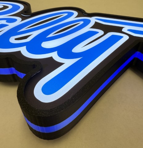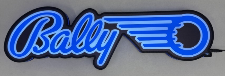 Pin-Signs are contour shaped light up desktop signs that also have holes to hang on a wall. Bally Pinball Logo Pin-Sign Extra Large measuring 25x8x2 Inches