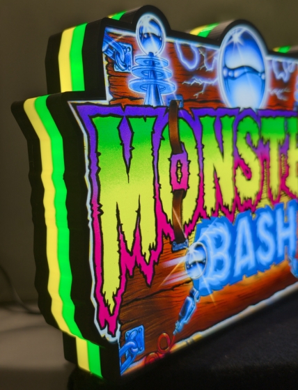 Pin-Signs are contour shaped light up desktop signs (or have holes to hang on a wall), plug directly into 5v USB connections, and can be powered from a computer or other USB connection. The Monster Bash Logo Pin-Sign measures 10×6.5×1.5