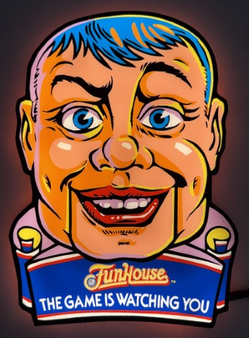 Pin-Signs are contour shaped light up desktop signs that also have holes to hang on a wall. Rudy Funhouse Promo Pin-Sign Extra Large measuring 16x12x2 Inches