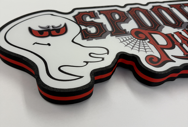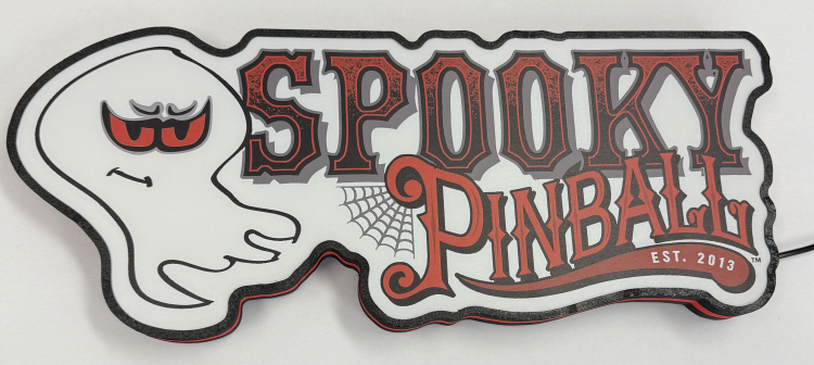 Pin-Signs are contour shaped light up desktop signs that also have holes to hang on a wall. Spooky Pinball Pin-Sign Extra Large measuring 22.5x9x1.5 inches.