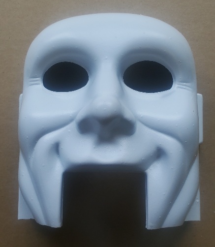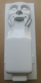Molded Face and Back of Head for Ted from Road Show UNDECORATED, 2 Pieces. These are original WMS Molds 31-2017-1 Face, and 31-2017-2 Back of Head for Ted from Roadshow molded in White Styrene which was one of the ways vs colorized (which would often mismatch the colors of the jaw and eyes) that this was molded, it is undercorated and cut per original. Slightly thicker material which is vacu-formed, and drawn. Decorate your own. Note that there were a couple different versions of cuts and on the back of head the top cut is slightly wider, but this is covered by the yellow hard Hat.